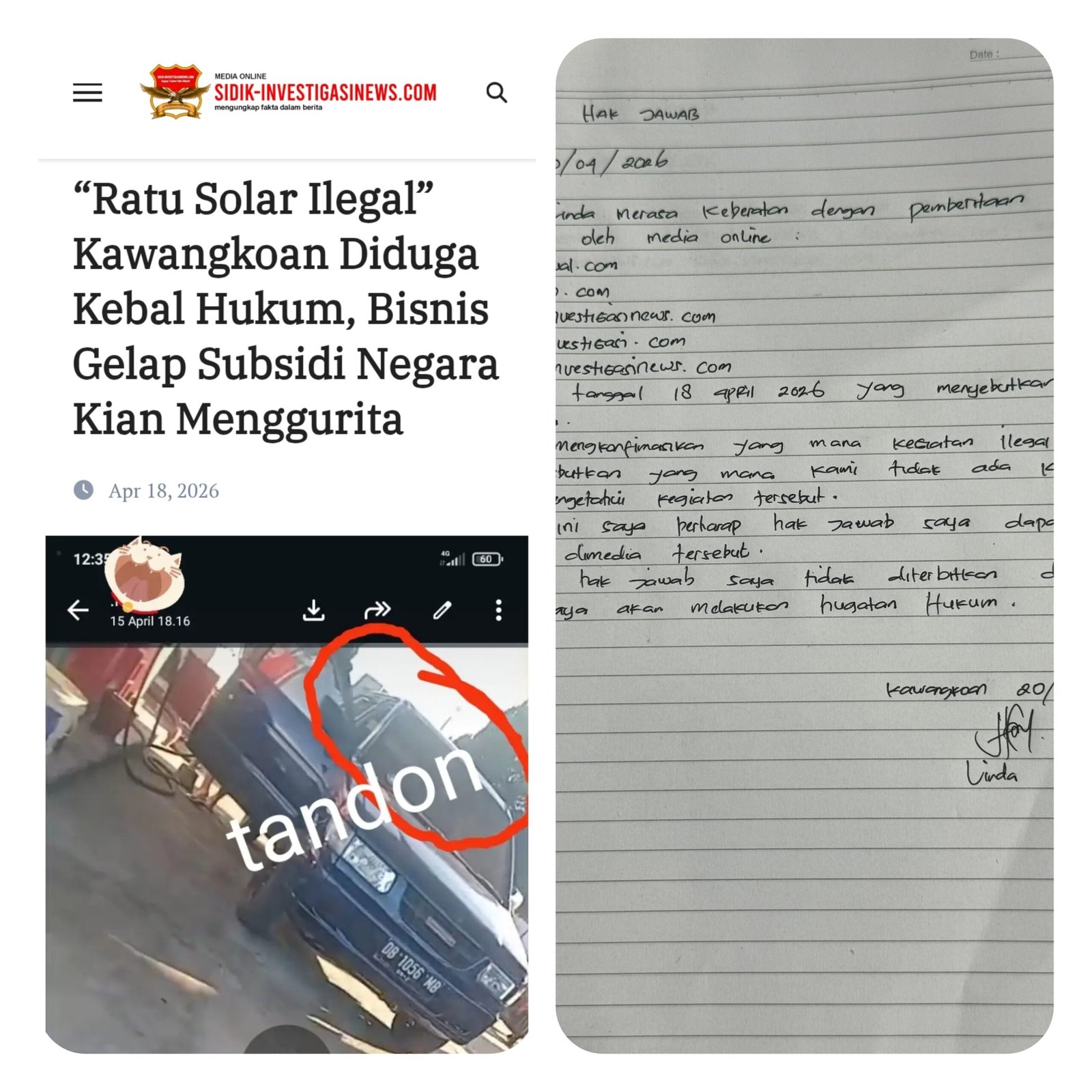 “Ratu Solar Ilegal” Kawangkoan Diduga Kebal Hukum, Bisnis Gelap Subsidi Negara Kian Menggurita