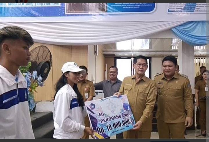 Bitung.Pemerintah Kota Bitung melalui Walikota Bitung.Hengky Honandar SE didampingi Wakil Walikota Bitung Randito Maringka menyerahkan langsung bonus kepada atlet,pelatih dan official kontingen Kota Bitung yang berprestasi pada ajang pekan olahraga Provinsi XII Sulawesi Utara.Penyerahan dilakukan di ruang S.H.Sarundayang,Senin(23/2/2026)